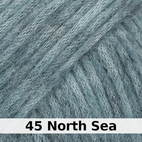 Garstudio Drops Air is a light-as-air (yet warm!) Aran weight yarn, due to its innovative "blow yarn" construction. The alpaca and wool fibres have been blown into a chain tube of gossamer polyamide, making an incredibly soft and surprisingly strong yarn.