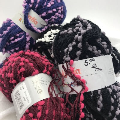 Katia Rocio is a novelty yarn specially made for making ruffle scarves.