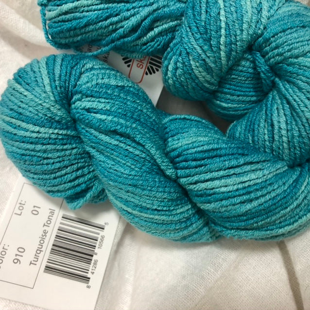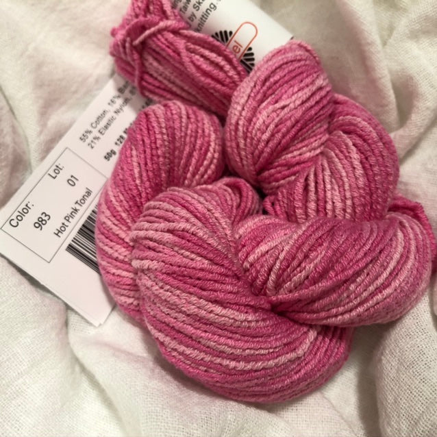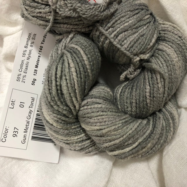 Rounding out the CoBaSi lines, is CoBaSi DK Tonal! The admired blend of cotton, viscose from bamboo, silk, and elastic nylon is back for another debut in a versatile DK weight of 5.5-6 stitches per inch. The soft, machine washable blend makes for a vast range of possibilities from summer tops, to wool-free sweaters, blankets, and accessories.