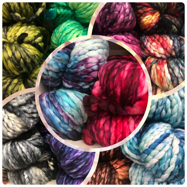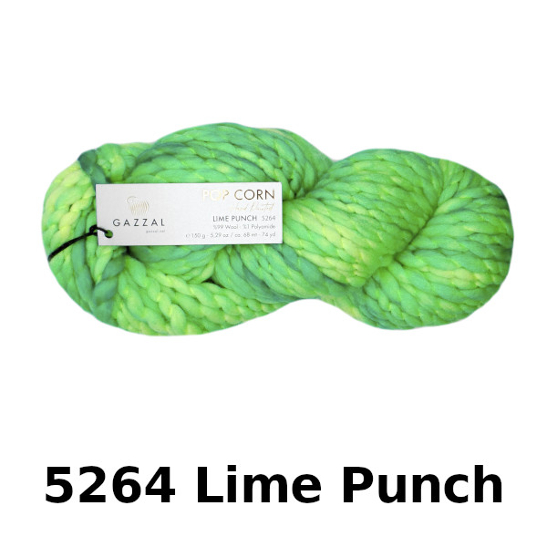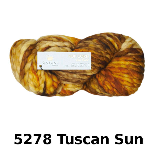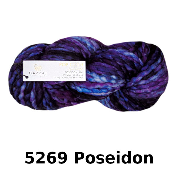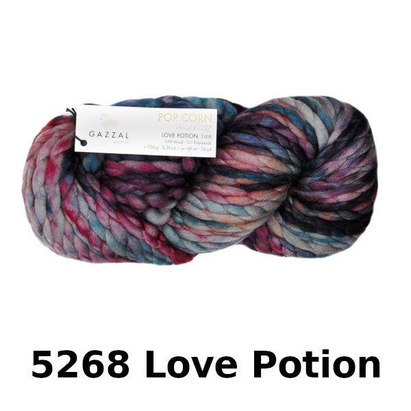 Gazzale Popcorn is a thick, soft and squishy yarn that feels like a cloud in your hands. Using 12-15mm needles, your projects will work up in no time, and the hand-dyed colours change from stitch to stitch!