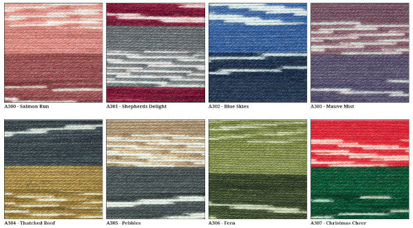 James C Brett Scandi Aran has alternating bands of solid and patterned sections for effortless jacquard knitting.