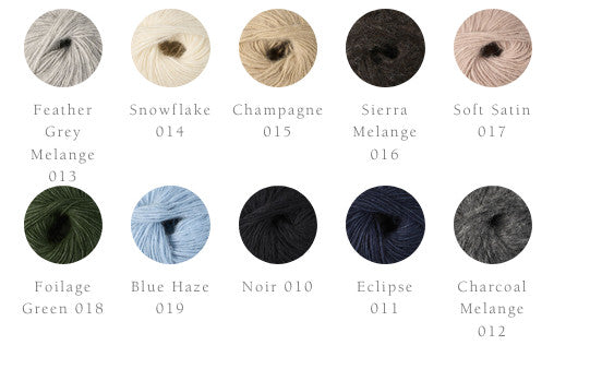 Mode at Rowan Alpaca Cotton is a featherlight yarn, showcasing an subtle colour palette. Its airy feel and romantic halo are achieved by filling delicate cotton mesh with luxurious alpaca fibers. The result is a lightweight yarn with incredible meterage and spectacular texture.