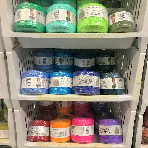 Polyester chainette yarn/cord suitable for macrame or making crochet purses.