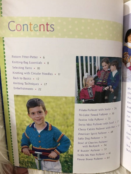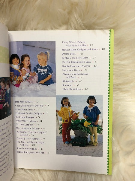 Get inspired to pick up your needles with 41 more wonderfully whimsical knits for kids! Ruffled necklines, picot edgings, multicoloured ribbings, and other details feature this winning design team's bright, fun colours and kid-friendly style.
