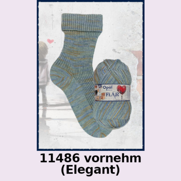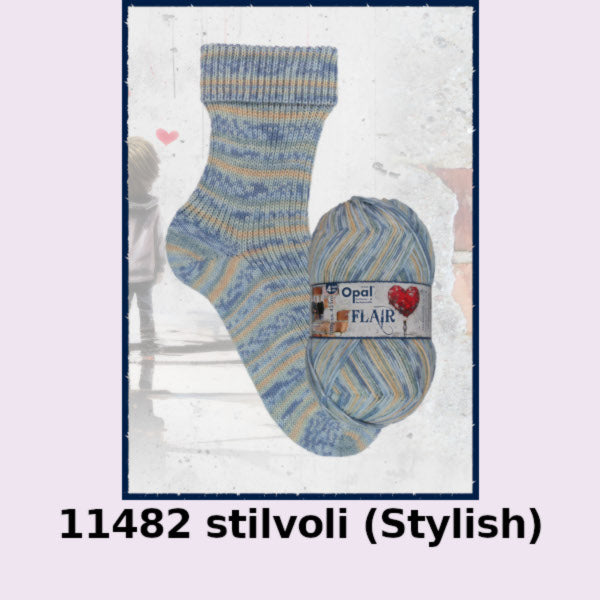Opal Flair captivates with its short repeat and harmonious, muted colors. Knit your own flair into your new favorite garment.