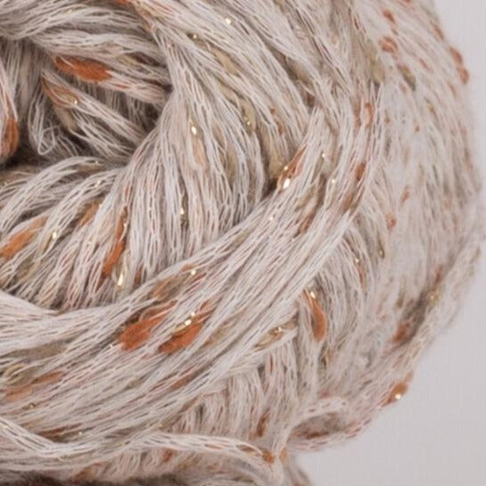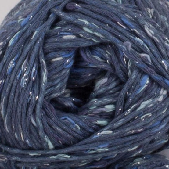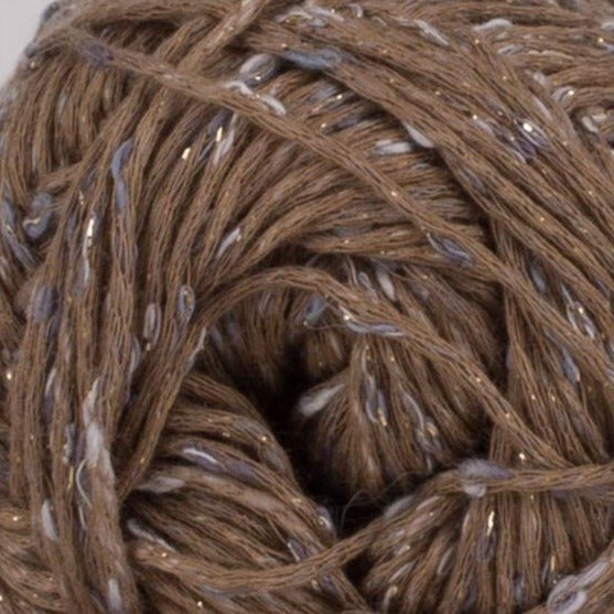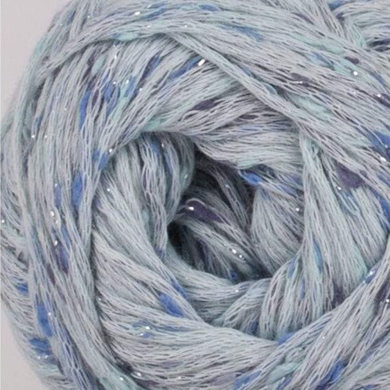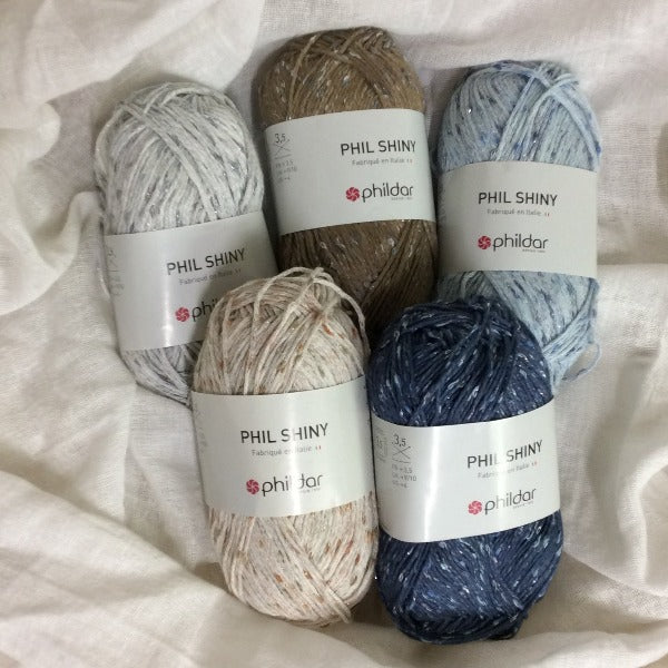 Phil Shiny is a chainette cotton blend yarn with a little bit of sparkle. Predominantly cotton, this light and sparkly yarn has a tweed effect for beautiful summer projects.