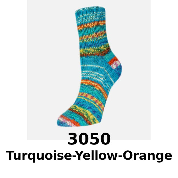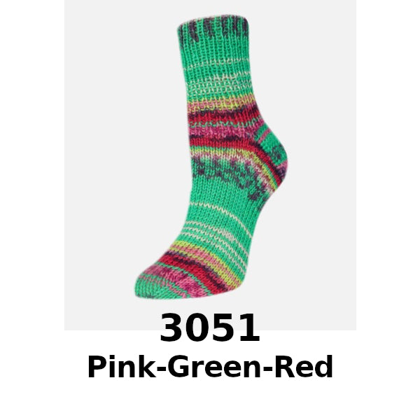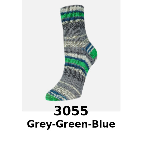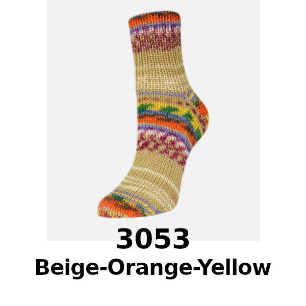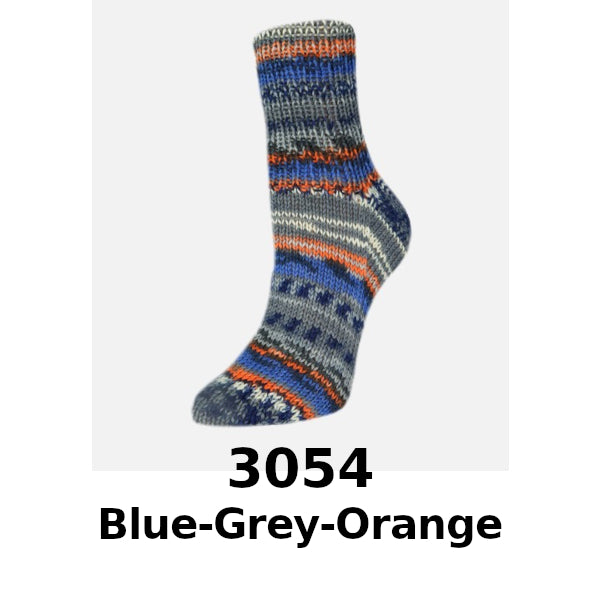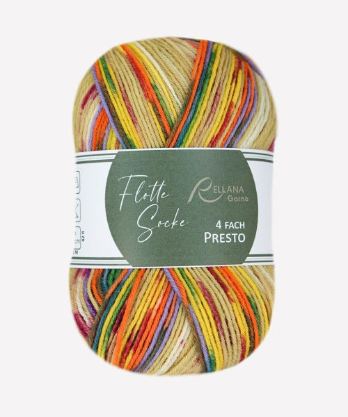 Rellana Garne Flotte Socke Presto 4ply combines bold stripes and fun jacquard patterns to make intricately designed socks a breeze!