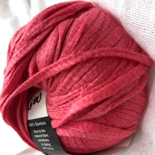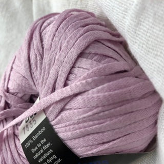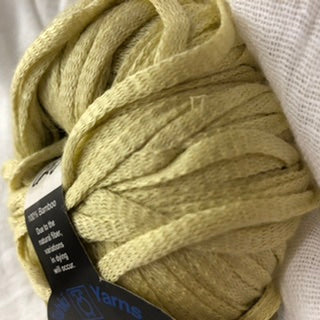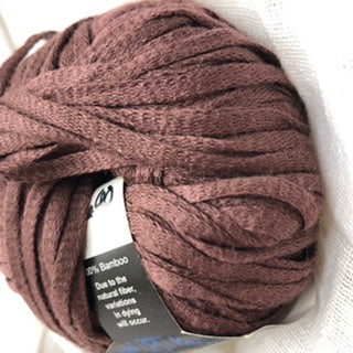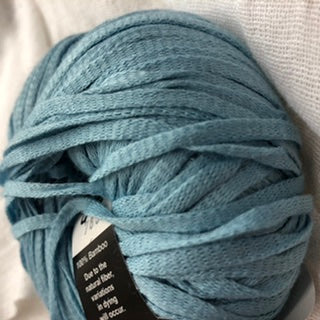 This soft, ribbon-type yarn is sourced from 100% bamboo. It can be used in any pattern calling for Aran to chunky weight yarn.